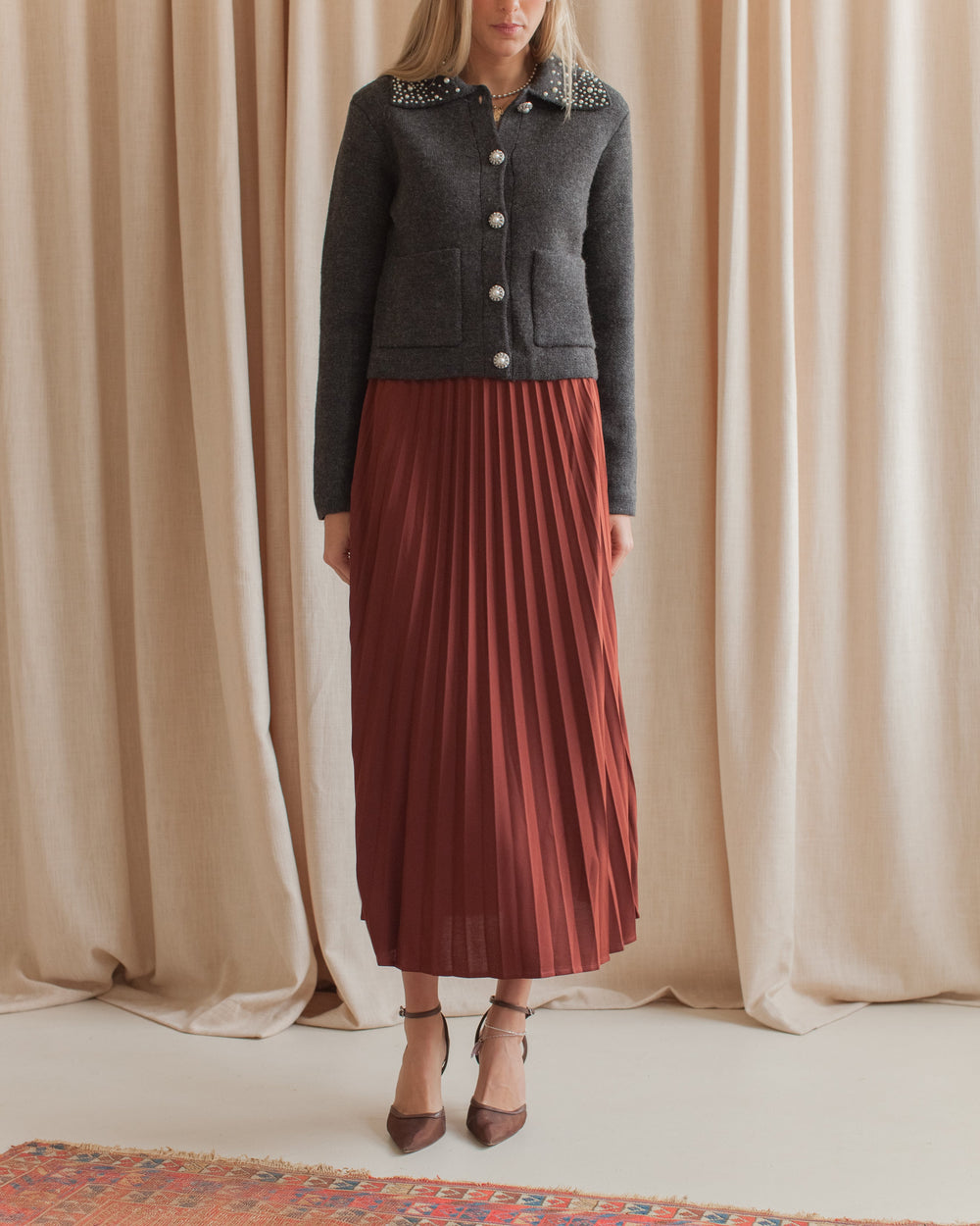 Elevate your everyday style with this striking midi skirt. Features a smooth, high-rise waist and versatile length, perfect for pairing with knitwear or blouses. Pair with tights and heels for a night out.