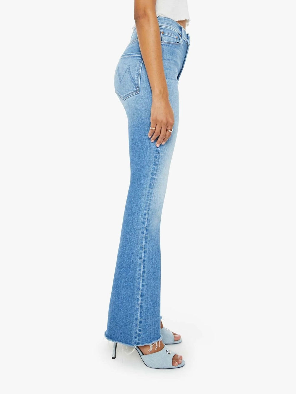 Take a hint. This cult-favorite flare jean has a high rise with a 31-inch length inseam and a frayed hem. Crafted from soft stretch denim, Read Between The Lines is a medium blue wash with subtle fading and whiskering.