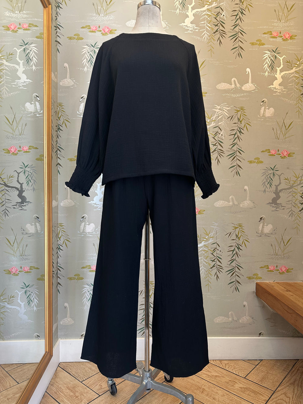 It's back and better than ever! The comfiest gauzy set, we love the cropped pant with wide waistband and pockets. 24” inseam. If between sizes, please size up in the pant.